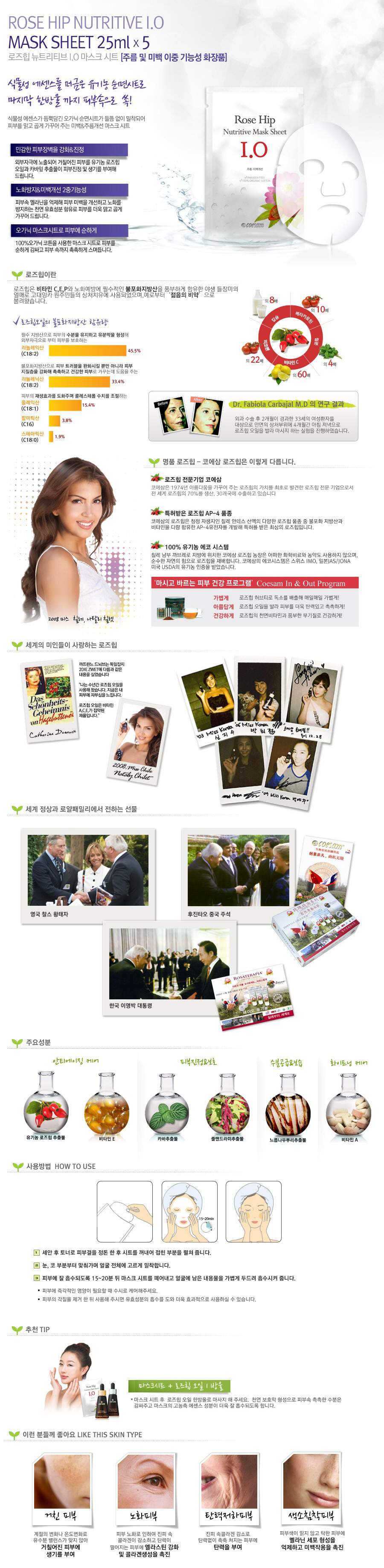 잉카원주민들에게 젊음의 비약이라고 불렸던 로즈힙! 레몬 60배 이상의 비타민C로 마사지하세요. 주름과미백을동시에~