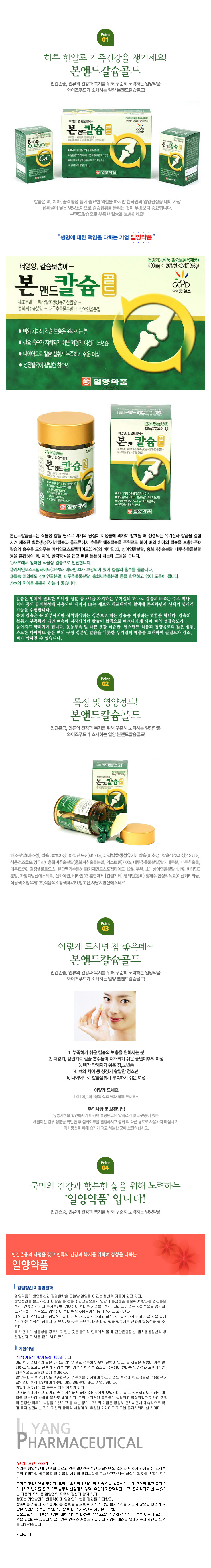 인간존중, 인류의 건강과 복지를 위해 꾸준히 노력하는 일양약품! 와이즈푸드가 소개하는 일양 본앤드칼슘골드! 우리가족 치아, 뼈, 칼슘 하나로 해결할 수 는 없을까? 왜없어! 여기 있잖아~!